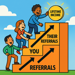 It’s easy to underestimate how powerful this can be. Let’s say you introduce just five new people to MAP. That’s good — you’ll earn lifetime commissions from them. But if even two of those five bring in five more each, suddenly your network has expanded to 15 people contributing to your income, not just five.